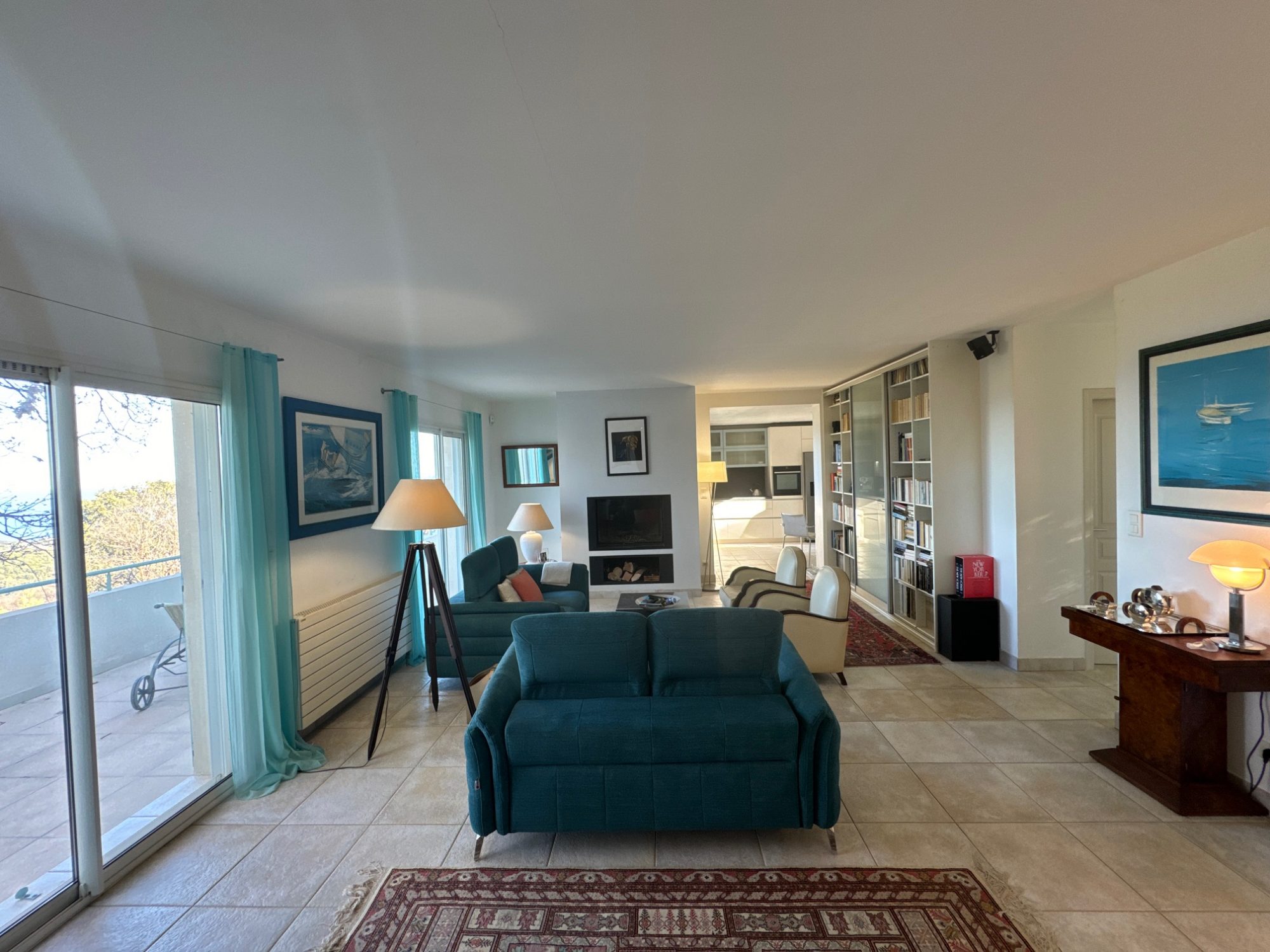 Au rez-de-chaussée: une chambre de plain pied, une salle de bain, WC, cuisine / salle à manger ouvrant sur une terrasse couverte côté piscine. Le vaste séjour lumineux donne sur une grande terrasse de 131 m², un espace idéal pour profiter en famille ou entre amis de moments conviviaux sous la pergola. À l'étage sur un chaleureux sol en chêne, deux chambres cosy, avec chacune une terrasse, ainsi qu'une salle de bain. Derriere la véranda, le grand salon se prolonge sur un espace bureau/bibliothèque parfait pour le travail au calme. Pour un confort thermique optimal hiver comme été, la maison est entièrement climatisée et dispose de deux poêles à bois.