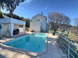 135m2 habitables sur 2 niveaux, sur un terrain arboré de1577 m² avec piscine traitée au sel et garage de 10m2.
