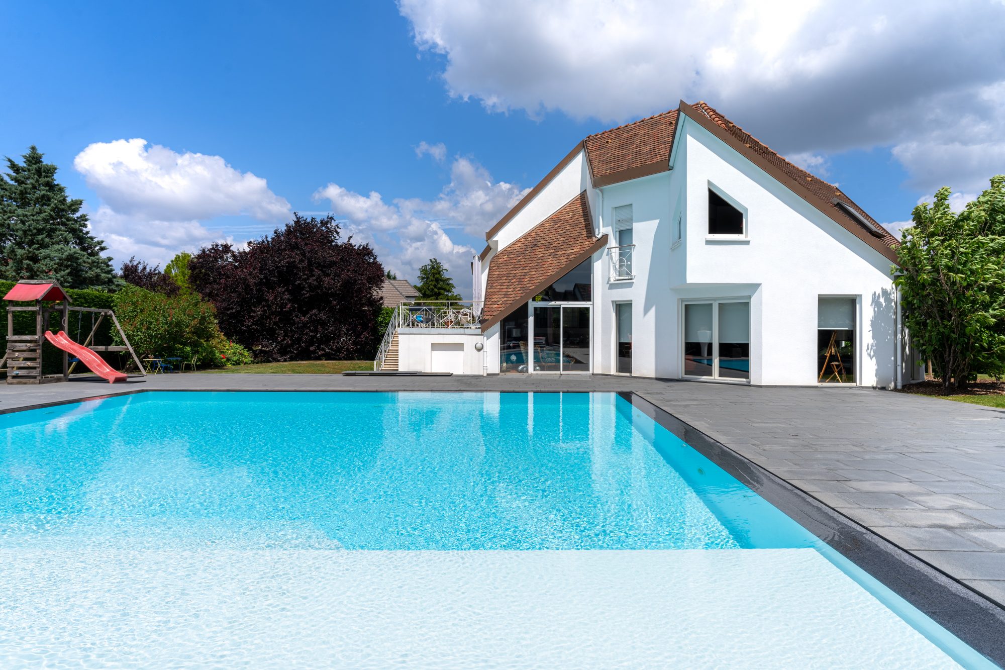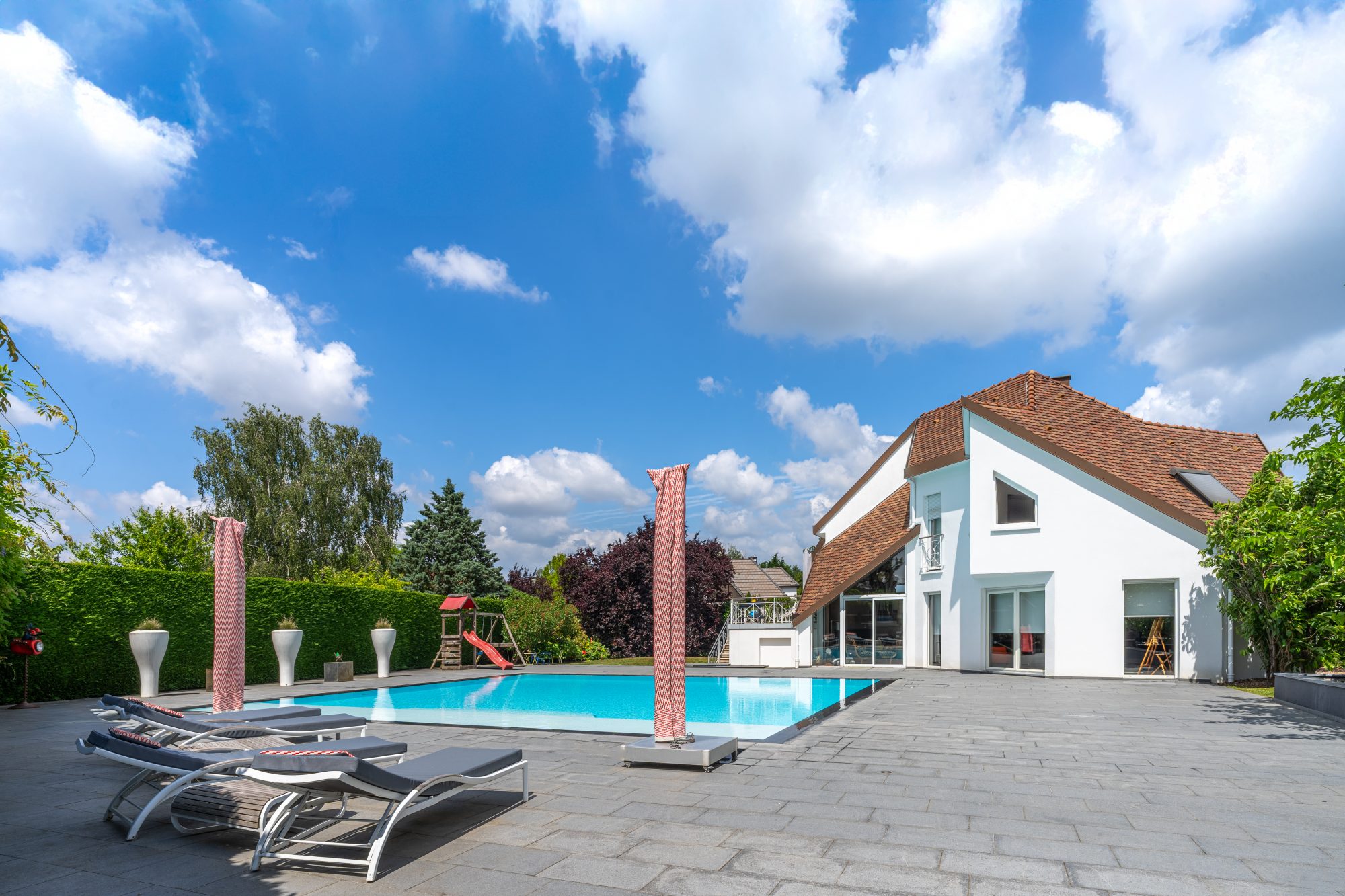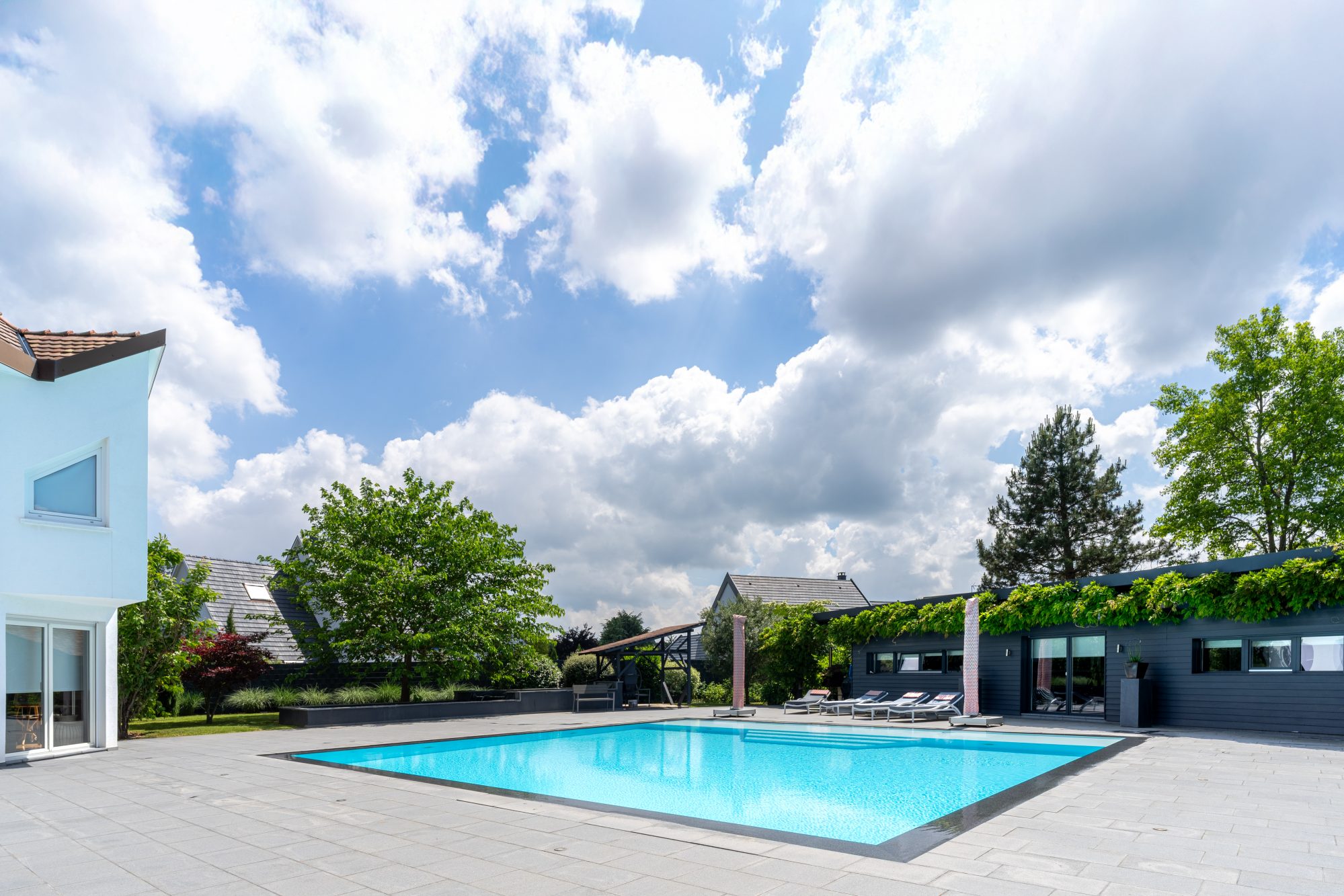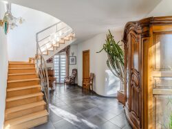 En collaboration avec l'agence IMMOMANN, Lienhard IMMO vous propose, nichée au fond d'une impasse paisible, dans la commune prisée de Niederhausbergen à 7 min de Strasbourg et proches de toutes les commodités, cette villa d'architecte de 220m2 se situe dans un environnement préservé, un jardin sans réel vis à vis et une architecture distingué. Dès l'entrée, les volumes séduisent. Un vaste séjour salle à manger d'environ 50m², baigné de lumière, totalement ouvert sur l'extérieur. Une cuisine équipée avec coin repas accès terrasse. Matériaux sélectionnés avec soin. À l'arrière de la maison, à l'abri des regards, une piscine invite à la détente. Le terrain, joliment arboré, prolonge la maison vers la nature, créant un véritable cocon de tranquillité.