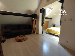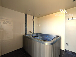À l'étage, un espace distribue une chambre ainsi qu'un bureau pouvant facilement devenir une chambre supplémentaire. Et pour prolonger l'expérience bien-être, une pièce avec jacuzzi privatif vient parfaire l'ensemble