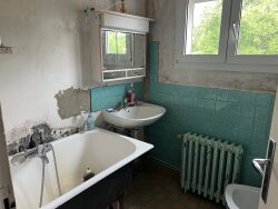 Tergnier, l'agence Carrez Immobilier vous propose cette maison individuelle de plain pied comprenant entrée, séjour, cuisine, 2 chambres, salle de bains, WC. Garage, cave, jardin. Travaux à prévoir