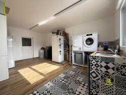 Au RDC : une spacieuse entrée de 20m², accompagnée d'une buanderie fonctionnelle et d'un grand garage de 70m², idéal pour plusieurs véhicules ou du rangement.