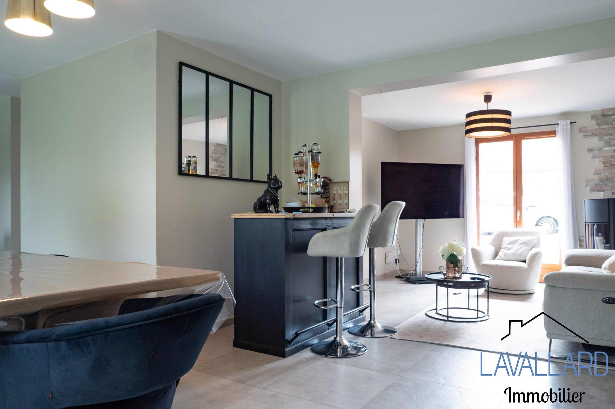 Le bien dispose d'une cheminée à granulés, de volets électriques, d'une cuisine américaine aménagée et équipée, d'une VMC simple flux ainsi que d'un système d'alarme.