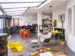 Elle se compose au rez-de-chaussée d'une entrée avec rangements, une chambre avec dressing, une salle d'eau WC, d'un grand bureau éclairé par de grandes menuiseries permettant également d'être utilisé en chambre d'amis, un salon ouvert vers une magnifique cuisine entièrement équipée et suivi d'une véranda en alu de plus 40m2. Une buanderie vient compléter cet espace donnant sur le jardin. A l'étage, un espace atelier ou bureau vous accueille avant de desservir une grande suite parentale avec dressing (possibilité de la séparer en 2 chambres) ainsi qu'une grande salle de bain avec WC, baignoire, douche et double vasque.