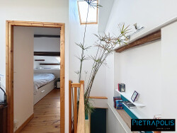 ? Atouts du bien : Maison de caractère avec murs en pierre, saine et entretenue Pas de travaux avec 4 chambres dont une suite parentale Situé proche centre/bourg Séjour spacieux d'environ 40 m² avec plancher chauffant Belle suite parentale à l'étage 2 places de parking privatives dans la résidence fermée/sécurisée Réfection complète de la toiture réalisée en 2024 Portail électrique du parking changé en 2023 Une buanderie Extérieur aménagé DPE D Une maison mitoyenne d'un côté en copropriété comprenant 3 niveaux : rez-de-chaussée : une cuisine ouverte sur salon/séjour donnant sur un jardin, une buanderie, un WC séparé ; premier étage : 3 chambres, une salle de bain, un rangement, un dégagement ; deuxième étage : un bureau/salle de jeu, une suite parentale avec salle de bains. Description :