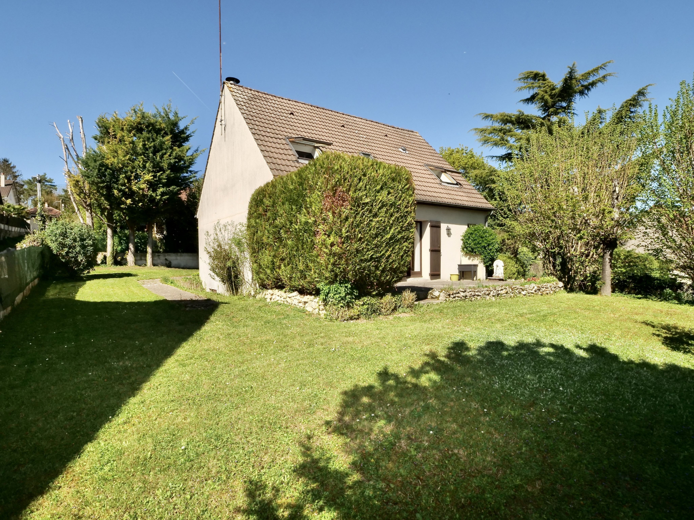 Vous profiterez d'un jardin avec un belle terrasse et une remise.