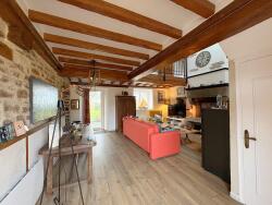 La maison est composée au rez-de-chaussée d'une pièce de vie avec sa cheminée ouverte, d'une cuisine équipée et aménagée, d'une salle d'eau et d'un wc. Au 1 er étage, vous trouverez une mezzanine desservant 2 chambres avec un placard de rangement. Garage attenant à la maison et carport.
