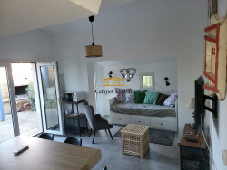 Au calme dans une petite résidence sécurisée avec piscine et terrain de tennis, Maison très lumineuse de 40 m2 environ avec jardin sans vis à vis avec une belle vue dégagée sur la nature. Entièrement rénovée avec menuiserie PVC double vitrage et climatisation réversible. Belles finitions intérieures. Elle se compose au rez-de-chaussée; d'une pièce de vie séjour-cuisine, d'une salle d'eau, d'un WC séparée , d'un dégagement avec un canapé-lit pour deux personnes. À l'étage une chambre avec placard de rangement. Un parking privatif à quelques mètres. Idéalement située à 10 minutes à pied du centre du village et ses commerces. 15 minutes à vélo de la plage des Arresquiers et des étangs. La gare Vic-Mireval ainsi que des arrêts de bus pour un accès Montpellier ou Sète à proximité 34110 Vic -la-Gardiole, joli village très agréable à vivre situé en bord de mer et de la Gardiole pour de belles ballades nature.