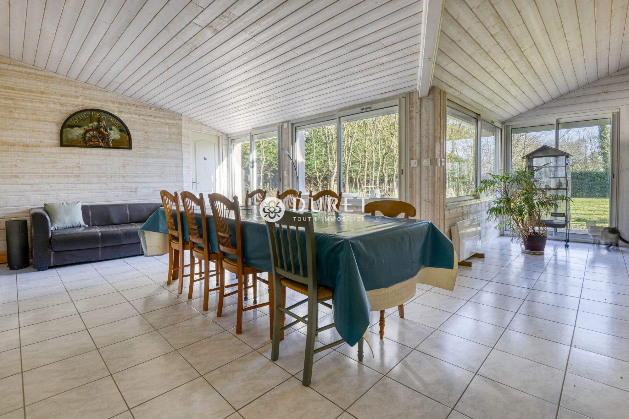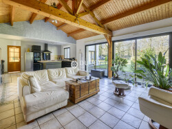 une maison comprenant: une entrée donnant sur le salon-séjour, cuisine semi-ouverte aménagée et équipée, une grande lingerie, 4 chambres (dont une dans l'extension), une salle de bain avec baignoire, douche et double vasque.