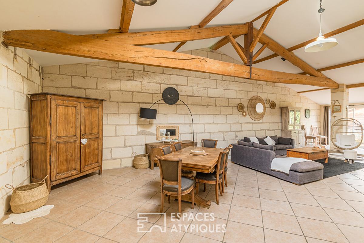 Au rez-de-chaussée, un vaste séjour de 38,74 m² baigné de lumière naturelle vous accueille. La cuisine, aménagée et équipée, est un véritable espace de vie ouvert sur la salle à manger.