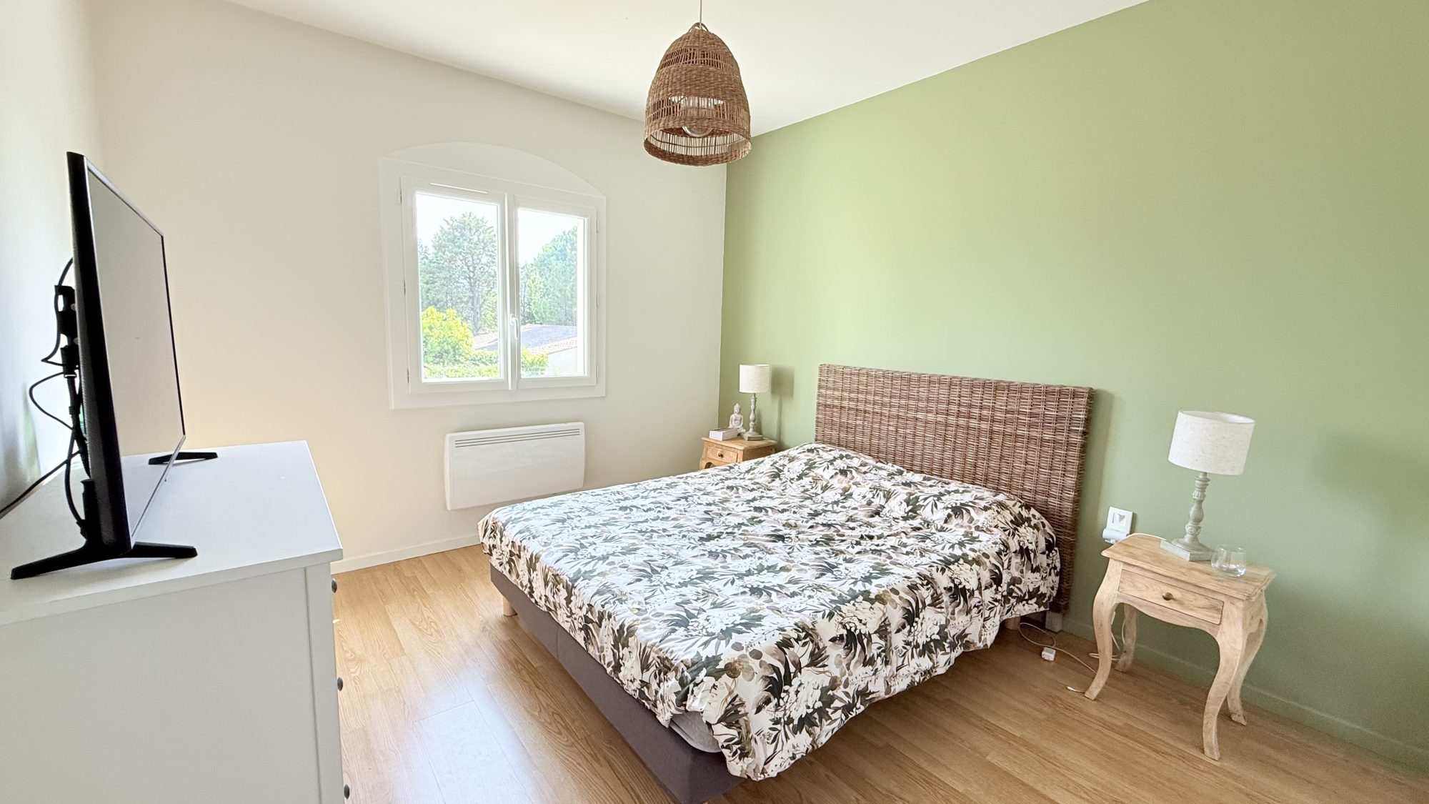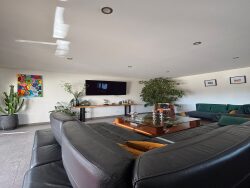 Elle se compose d'un grand salon/séjour, d'une cuisine entièrement équipée, ainsi que de trois chambres aux beaux volumes, dont deux avec salles d'eau privatives. Un studio indépendant vient compléter l'ensemble, offrant un espace de vie supplémentaire idéal pour accueillir famille, amis ou pour un projet locatif.