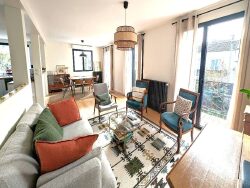 Vitry-sur-Seine. Au coeur du quartier pavillonnaire recherché du Port à l'Anglais. A 5 minutes à pied du RER C. Sur un terrain de 270 m², maison de charme non mitoyenne de 128 m² de surface plancher (174 m² au sol) agrandie et rénovée par architecte en 2021 composée d'un rez-de-jardin avec garage, buanderie/cuisine d'été et chaufferie ; d'un rez-de-chaussée surélevé comprenant entrée avec placard, wc, cuisine aménagée ouverte sur séjour de 25 m² ouvrant sur balcon ; d'un 1er étage comprenant palier/espace bureau avec placard, 2 chambres avec placards, salle d'eau, wc séparés ; d'un 2ème étage comprenant palier/salle de jeux, 2 chambres avec placards, salle d'eau avec wc. Jardin et grande terrasse. Exposition Sud. Chaudière à condensation, triple vitrage. DPE classé C. Coup de coeur assuré ! Contact au : 06 52 42 67 38