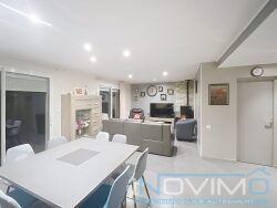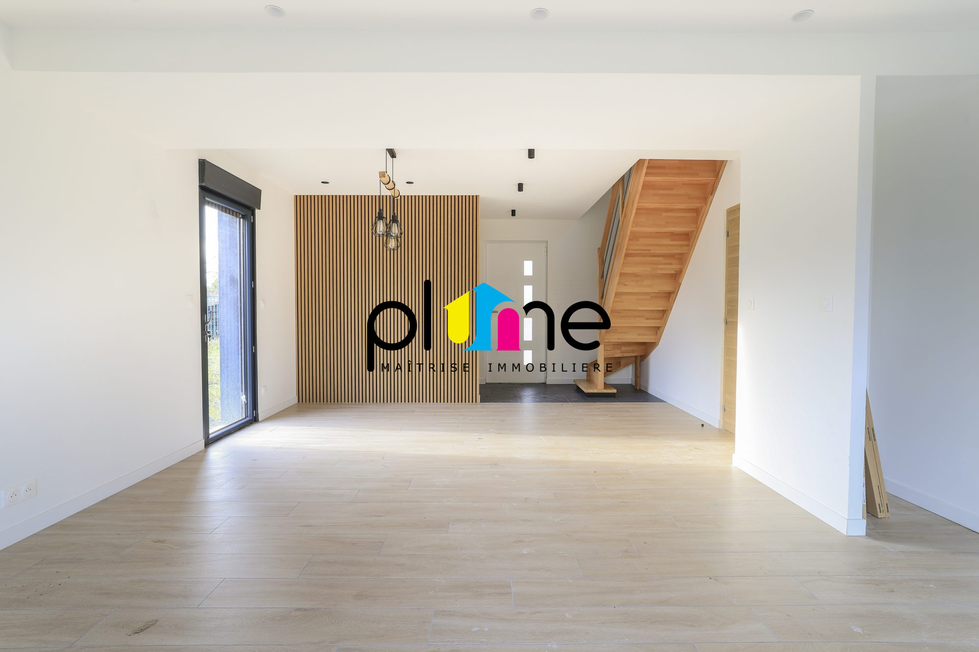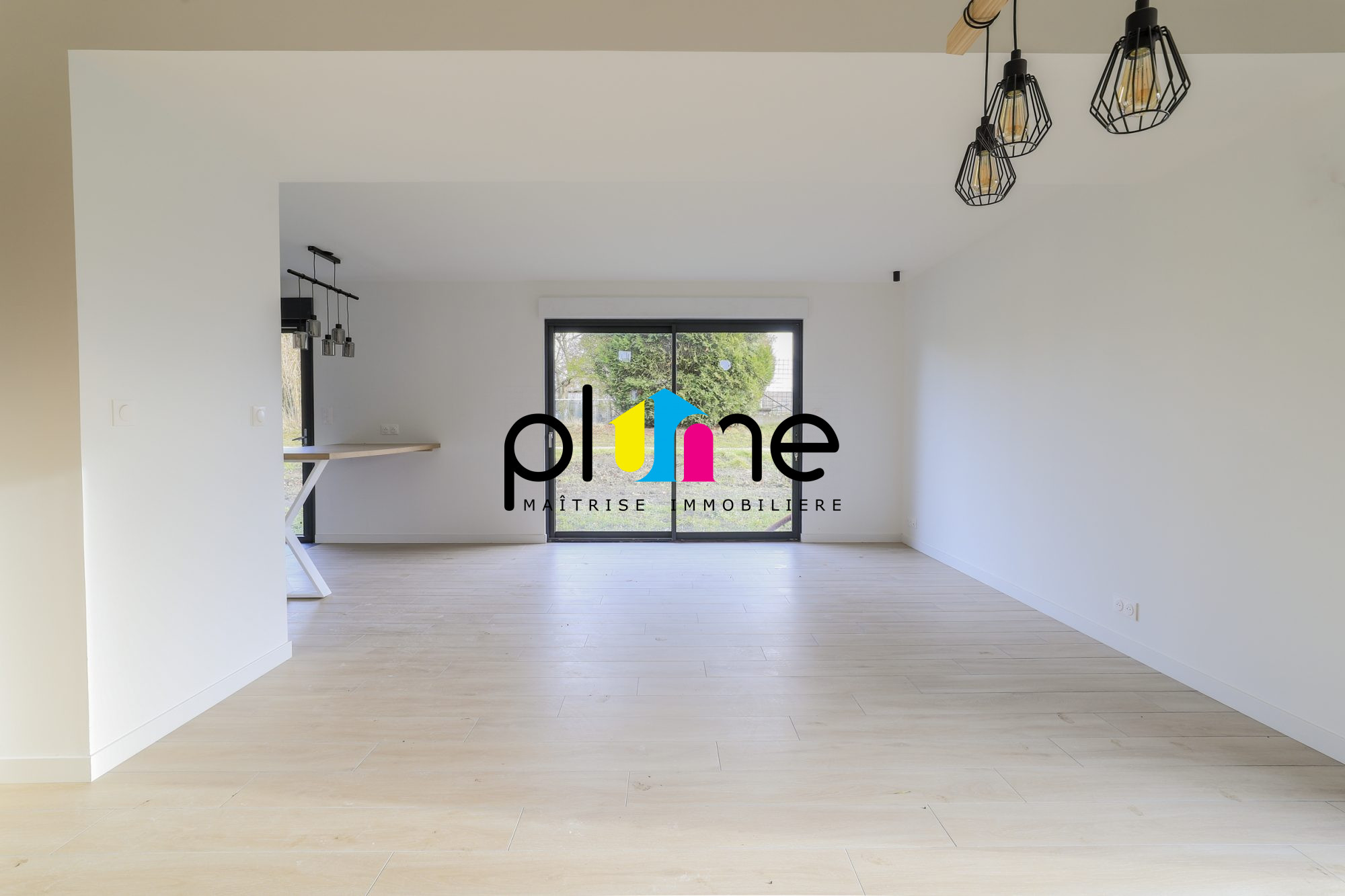 Au rez-de-chaussée on y trouve une entrée, un double séjour ouvert sur une cuisine aménagée et équipée, une buanderie, un WC, une salle de bain, trois chambres, une terrasse, un jardin et un garage.