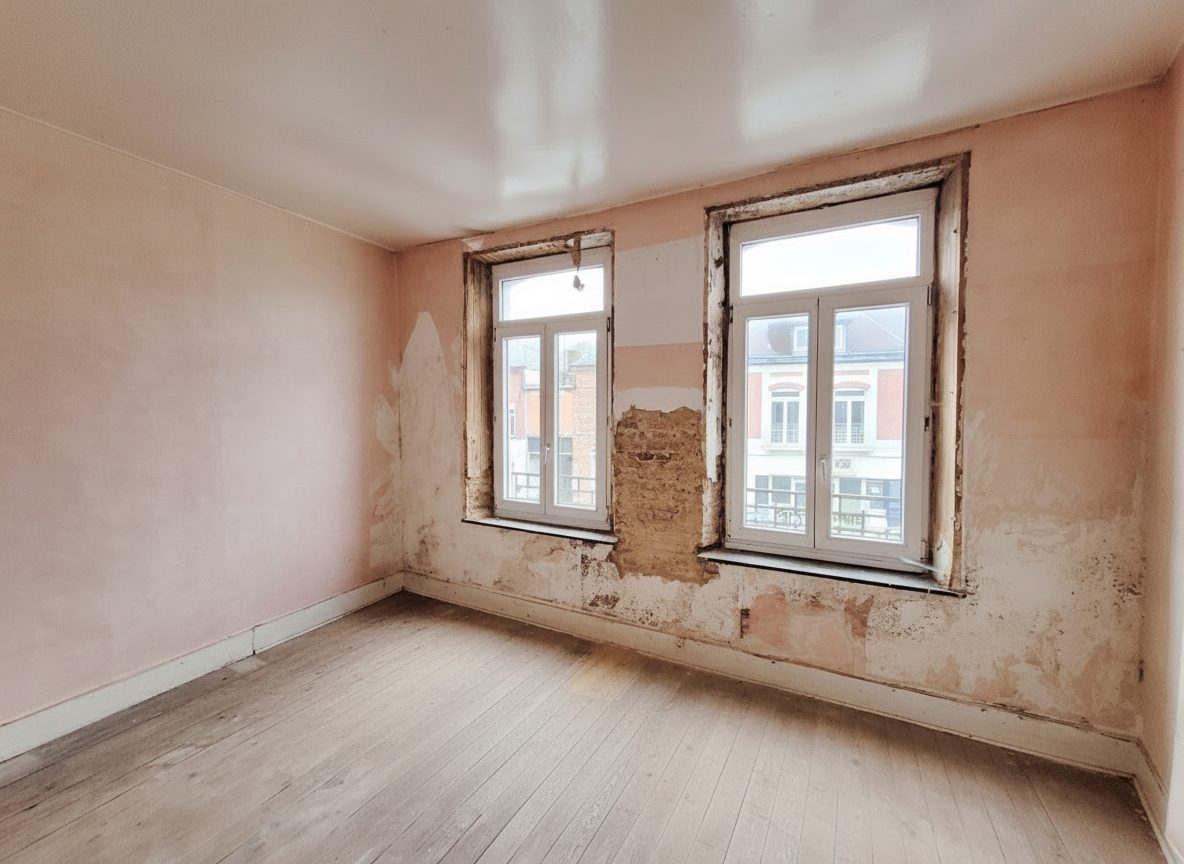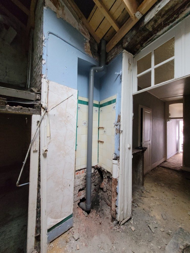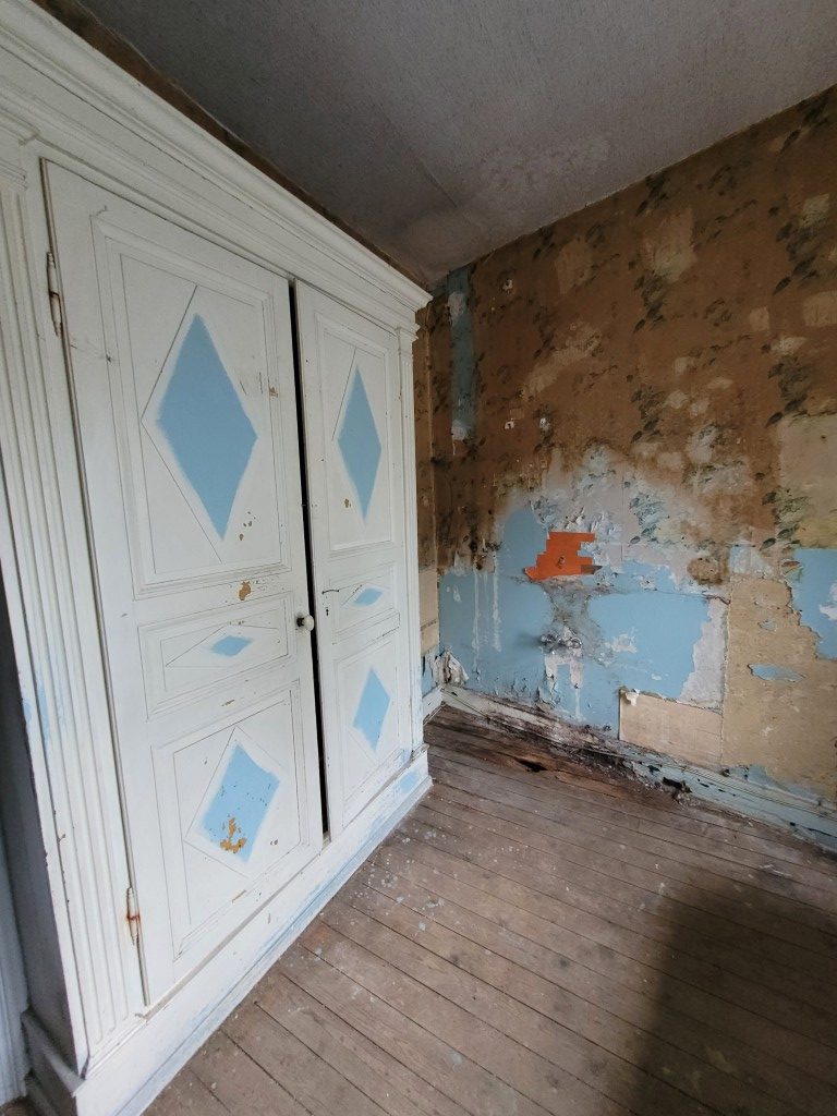 Maison à rénover comprenant séjour, cuisine, salle de bains. A l'étage: 2 chambres. Terrain, cave. Non éligible au DPE