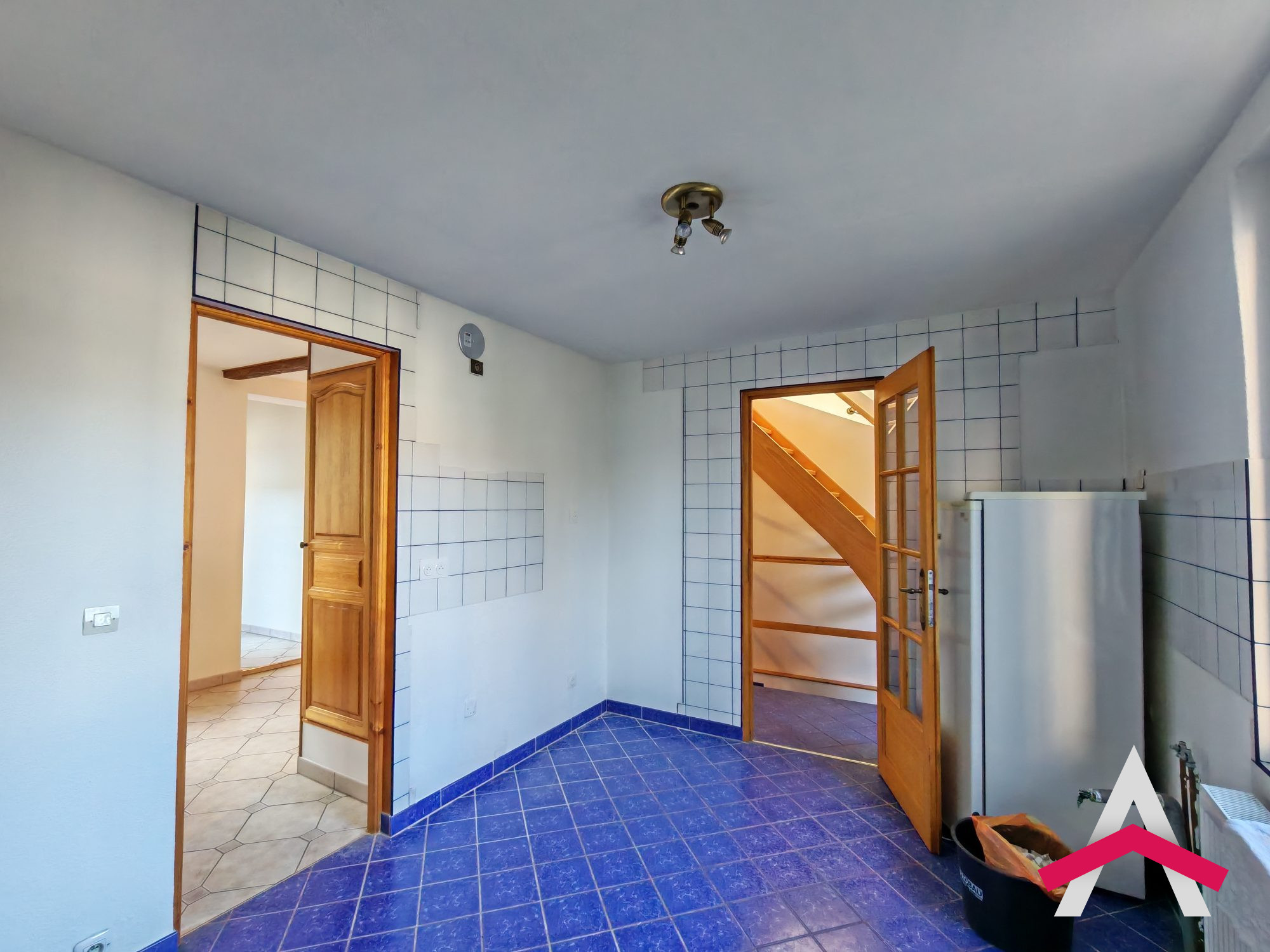 Implantée sur un terrain plat et clos sur trois côtés, elle conviendra parfaitement à des acquéreurs recherchant tranquillité et authenticité. Au rez-de-chaussée : Cuisine avec éléments intégrés Salon avec poêle à bois Pièce indépendante (bureau, chambre ou second salon) Salle d'eau avec douche, lavabo et WC Accès cave depuis le couloir À l'étage : Grande chambre en longueur avec meuble lavabo Seconde chambre spacieuse et lumineuse Salle de bains avec baignoire, lavabo et WC Accès aux combles aménageables Extérieurs : Garage double avec portes basculantes Terrain plat facile à aménager Il s'agit d'une maison avec du caractère, saine, bien située, qui demandera des travaux mais qui offre un vrai potentiel d'évolution.