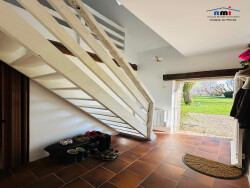 En EXCLUSIVITÉ, à quelques minutes d'un village avec premiers commerces et 15min d'une gare, en hameau au calme, l'agence AMI vous propose une maison ancienne rénovée de près de 140m² habitables sur plus de 4110m² de terrain avec vue dégagée. La maison offre au rez de chaussée : une entrée desservant d'un côté un cellier, un WC avec placards et une salle de bains (possibilité de créer une chambre). De l'autre, un séjour avec colombage de plus de 34m², un salon avec poêle à bois de 21m² et une cuisine aménagée et équipée de 14m². A l'étage, rénové récemment (isolation, velux, salle d'eau/WC, aménagement couloir et chambres), une chambre palière, un couloir avec rangements sous pente sur toute la longueur, une chambre d'enfant ou bureau (9.6m² au sol), une salle d'eau avec WC (4.1m²) et une grande chambre de 14m² (20.3m² au sol). Fenêtres en double vitrage bois, chauffage par convecteurs électriques et poêle à bois, couverture en tuiles de pays en bon état, assainissement individuel. En dépendance, un garage construit en bois et un bûcher. Terrain arboré de plus de 4100m² avec vue dégagée. BON ÉTAT. À VISITER RAPIDEMENT.