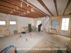 AXE CHANTONNAY - LA CHATAIGNERAIE. Dans commune paisible. Maison de village à rénover entièrement. Potentiel habitable d'environ 240m2 elle se compose actuellement d'une vaste pièce de vie avec coin cuisine, dégagement, trois vastes pièces et une salle d'eau avec wc. A l'étage, diverses pièces et greniers aménageables. Cave voûtée et deux petites cours attenantes à la maison. Terrain non attenant d'environ 200m2 à quelques mètres de la maison. Les + : maison raccordée au tout à l'égout, quelques ouvertures en PVC double-vitrage, convecteurs électriques...Réf. annonce : 6572. Prix : 49 500 EUR dont 4 500EUR d'honoraires agence, 45 000EUR net vendeur. Les informations sur les risques auxquels ce bien est exposé sont disponibles sur le site Géorisques : www.georisques.gouv.fr