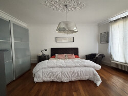 Au 1er étage, le charme opère avec un vaste séjour lumineux de 41 m², sublimé par de beaux volumes, une belle hauteur sous plafond, une cheminée avec insert et un balcon.