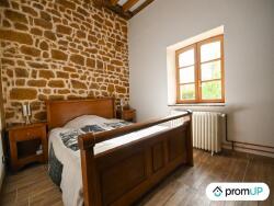 Le séjour de 30 mètres carrés, doté de magnifiques pierres apparentes et d'une cheminée, offre un cadre idéal pour des soirées cocooning en hiver ou des moments de détente en toutes saisons.