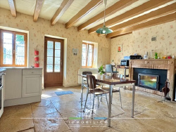ORGEUX (21490) À seulement dix minutes de Dijon, charmante maison ancienne indépendante en pierres offrant tout le cachet bourguignon. Elle est composée au rez-de-chaussée, d'une salle à manger d'environ 25 m2 avec cheminée et poutres apparentes, d'une cuisine sur dalles de Bourgogne équipée d'un insert bois tubé + une arrière-cuisine, d'une chambre et d'une salle d'eau avec WC. A l'étage, une mezzanine accueille actuellement le salon mais pourrait facilement être divisé en 2 à 3 chambres et un grenier aménageable permet des pièces supplémentaires. Dépendances comprenant une grange attenante d'environ 40 m2 au sol (garage deux voitures, atelier ou futur espace habitable) et un jardin clos d'environ 350 m2 exposé sud-ouest avec cour pavée pour stationnement et petit auvent. Le confort est assuré par un chauffage central au gaz de ville (chaudière Frisquet) complété par l'insert bois. Cadre paisible et écoles (groupement scolaire) sur place avec accès rapide A31, zones commerciales, CHU et universités de Dijon. Idéal pour les amateurs de caractère souhaitant conjuguer vie de village et proximité urbaine, avec beau potentiel d'agrandissement. Dossier complet et visite virtuelle sur demande.