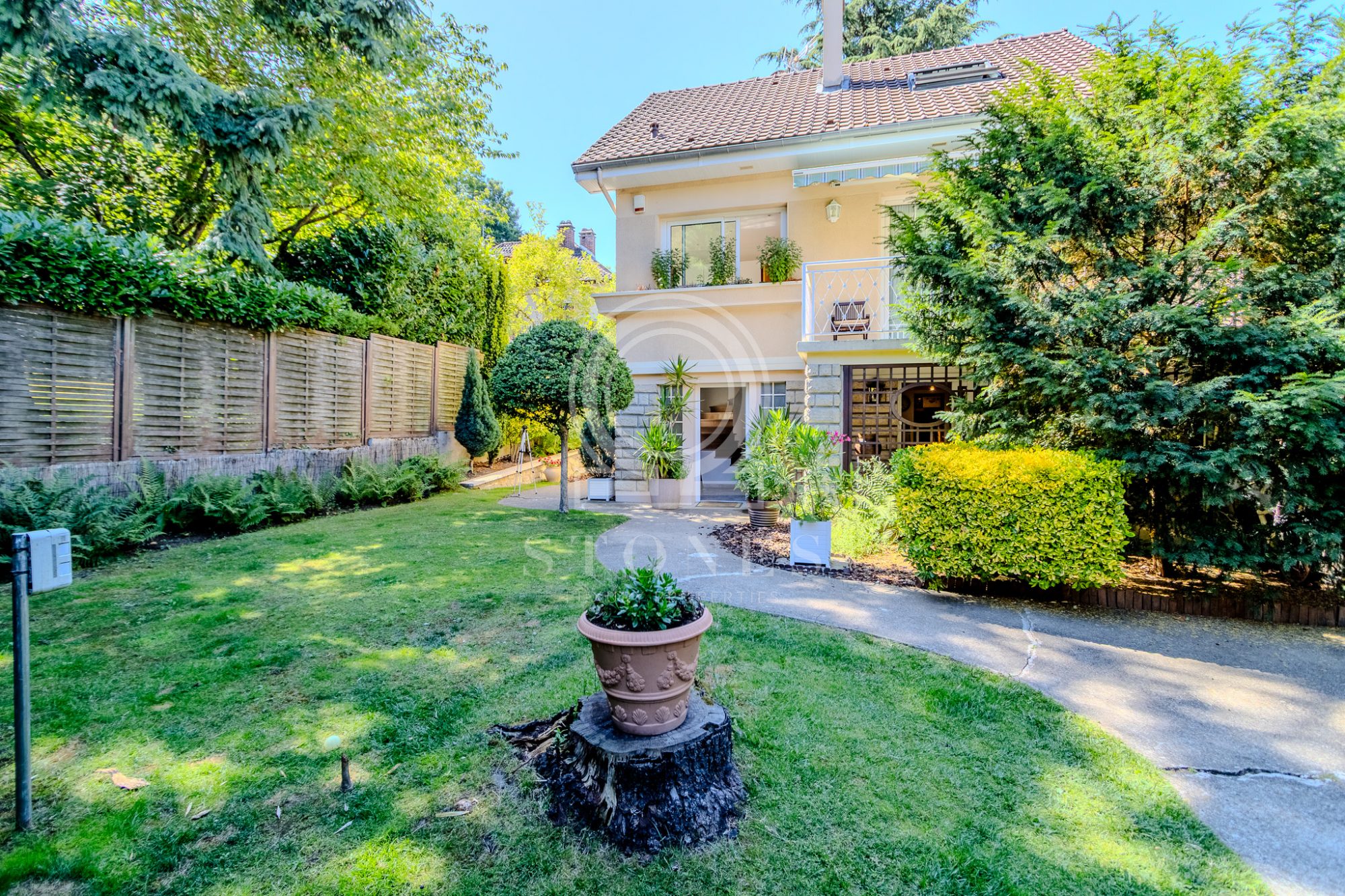 Maison ancienne de caractère dans un cadre naturel et résidentiel privilégié à Louveciennes 998.000 euros À seulement cinq minutes à pied du centre du village de Louveciennes, cette maison ancienne de caractère datant de 1860 et entièrement rénovée dans les années 1983-1990 offre un cadre de vie rare, conjuguant calme résidentiel, nature omniprésente et proximité des commodités. Son bon état d'entretien et ses rénovations régulières, sa belle luminosité et son cachet unique et préservé en font une demeure particulièrement agréable à vivre. La propriété développe environ 200 m ( 203 m2 au sol, 163 m2 habitables), complétés par un sous-sol et un garage, pour une surface totale d'environ 260 m². Pensée pour une vie de famille confortable, elle propose des volumes généreux et une distribution fonctionnelle. Les espaces de vie, chaleureux et lumineux, s'ouvrent largement sur l'extérieur. Le rez-de-chaussée accueille un triple espace de réception (double séjour et grande salle-à-manger ouverte sur une grande terrasse de plain-pied prolongée par le jardin), une cuisine aménagée et équipée avec plan de travail en granit, une arrière-cuisine / buanderie, l'un des deux salons bénéficiant d'une cheminée. Une entrée et un WC invités avec lave-mains complètent ce niveau. À l'étage, l'espace nuit se compose de cinq chambres, dont une de plus de 20 m², ainsi que d'une salle de bains, d'une salle d'eau et de trois WC. Le second étage offre un bel espace lumineux de 27 m², parfaitement adapté au télétravail (aménagé actuellement en double bureau) , à une salle de jeux, un atelier ou une chambre d'amis. Quelques travaux de rafraîchissement à prévoir. À l'extérieur, le terrain arboré d'environ 960 m², exposé sud, constitue un véritable écrin de verdure. Soigneusement paysagé, il bénéficie d'un accès direct à la forêt par le fond du jardin et d'une grande terrasse pour profiter des beaux jours en toute sérénité. Au sous-sol de 29 m2 accessible par l'arrière-cuisine (escalier intérieur) se trouvent la chaudière à gaz Viessmann récente (2023), une cave à vin, un établi et divers espaces de stockages. Un garage de 28 m² permet le stationnement d'un grand véhicule et offre un espace de rangement confortable. Deux stationnements supplémentaires sont possibles dans l'allée. La propriété est protégée par une alarme de haute qualité.