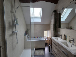 Etage : Une mezzanine servant de bureau, trois chambres et une salle de bain/ douche avec wc.