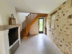 Nichée à l'abri des regards, au calme et sans vis à vis, maison rurale ancienne 5 pièces de 100m² offrant grande cuisine avec espace repas, séjour cheminée, 3 chambres à l'étage dont 1 suite parentale, 2 salles de bains, terrain clos de 730m². Carport, cave voutée, abri jardin et grange aménageable en pierre. Le charme opère.