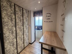 Au rez-de-chausse?e : une entre?e lumineuse sur une grande pièce de vie 40 m2 avec balcon, cuisine aménagée équipée ouverte, un dégagement avec placard, une buanderie et une chambre de 14m2 avec salle d'eau et wc.