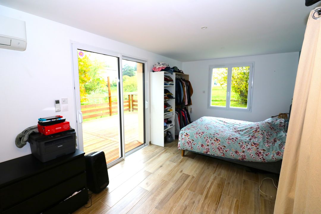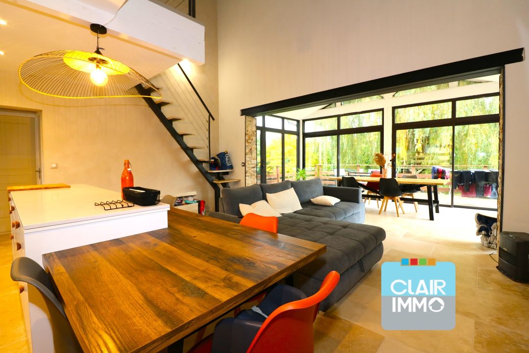 - Authenticité & Confort : Maison atypique avec de très grandes fenêtres d'époque, enduits intérieurs traités anti-allergènes, menuiseries PVC double vitrage. - Espace & Fonctionnalité : Salon chaleureux avec poêle à bois et climatisation, salle à manger séparée, 5 chambres, dont 3 en rez-de-chaussée et une suite parentale de 21 m2. - Grande salle de bains avec douche, baignoire d'angle, double vasque et WC, plus un WC séparé.- Cuisine spacieuse séparée, buanderie/chaufferie pour plus de praticité. - Chauffage performant avec chaudière à gaz récente DPE en C pour une bonne efficacité énergétique.