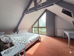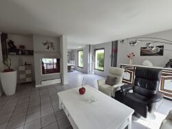 ORVAULT Bois Raguenet, au calme d'une impasse et au coeur de la verdure, parfaitement entretenue et non mitoyenne, cette très belle maison d'architecte de 165 m², bénéficie de toutes les expositions, entièrement ensoleillée elle s'ouvre sur un jardin arboré avec piscine . Elle est comprend, au rez-de-chaussée ; une très belle entrée, un grand espace de vie avec cheminée centrale, composé d'un salon séjour, une cuisine équipée ouvrant sur une salle à manger. Une chambre, une salle d'eau, wc, buanderie et garage double. L'étage est composé, d'un palier avec espace bureau, 4 chambres de belle superficie, une salle de bains, une salle d'eau et un dressing et un wc. Situation exceptionnelle face au parc paysager privatif lotissement, à 10 mn du centre ville de Nantes et à 1 mn du bourg d'Orvault, proche tous commerces, transports et écoles et périphérique à 2 mn.