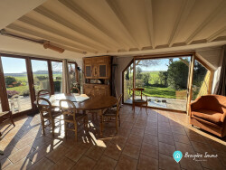 L'ensemble est niché sur un terrain clos, fleuri et arboré de près de 1 800 m², agrémenté d'une terrasse et d'une pergola, offrant une vue dégagée sur la campagne environnante.