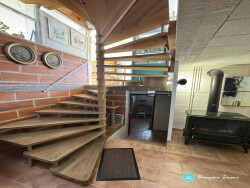 D'une superficie d'environ 110 m², la maison s'articule autour d'un élégant escalier central en bois et s'ouvre pleinement sur l'extérieur grâce à ses nombreuses fenêtres et baies vitrées.