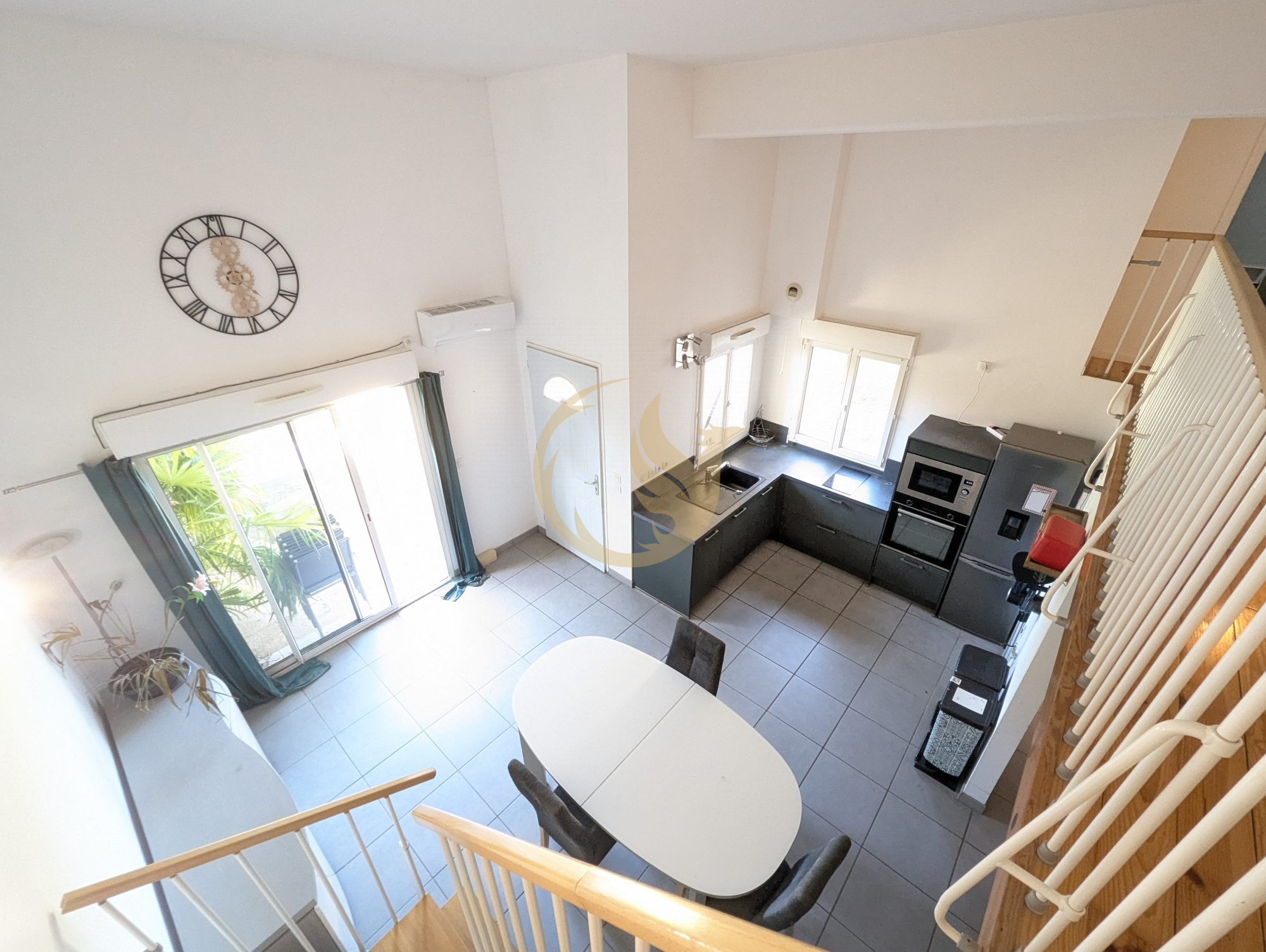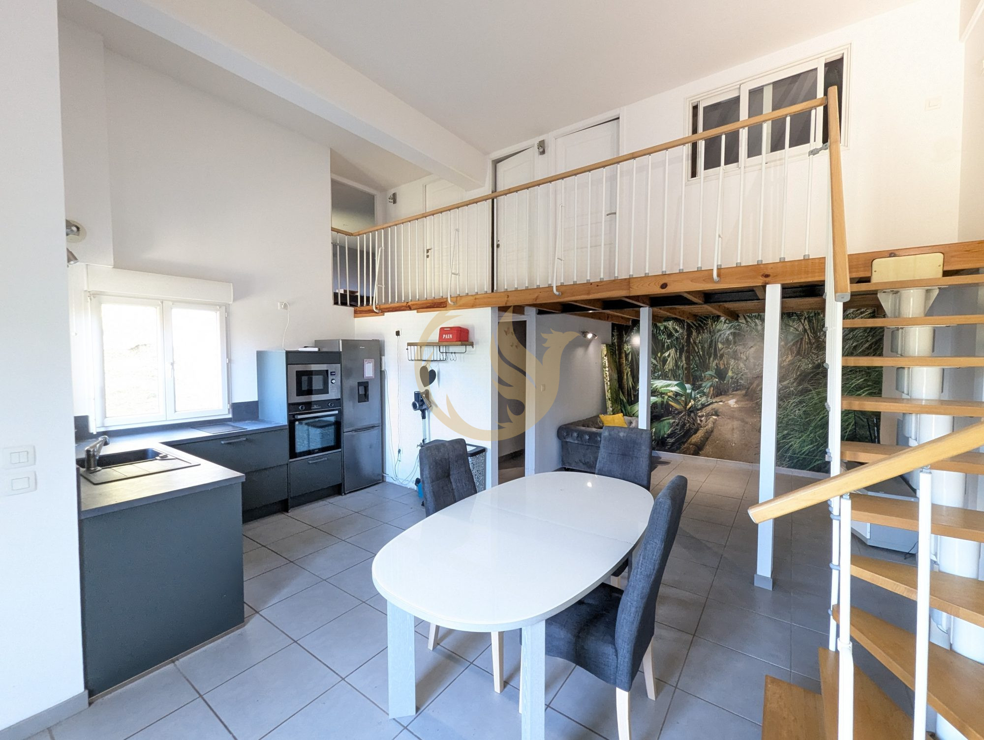 Elle se compose au rez de chaussée d'un séjour, d'un toilette, d'une salle de bain et d'une cuisine indépendante. Le coin nuit se trouve à l'étage avec ses 2 chambres.