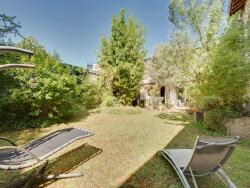 - Jardin sans vis-à-vis avec terrasse aménagée et barbecue en pierre, exposé sud,