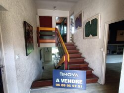 Dans un lotissement des années 80, Maison d'habitation de 113 m2 implantée sur un terrain clos de 340 m2 proches de tous commerces , écoles et transports en communs comprenant: - Au rdc : 2 chambres et un wc. - Au rdc sur élevé : cuisine aménagée et équipée semi-ouverte sur le salon séjour (52m2)avec une grande bibliothèque avec cheminée le tout donnant accès à la terrasse et au jardin clos. - A l'étage : un palier, 2 chambres avec placard et une sdb. Un garage (21m2).