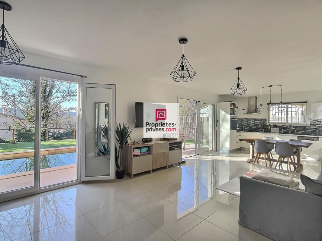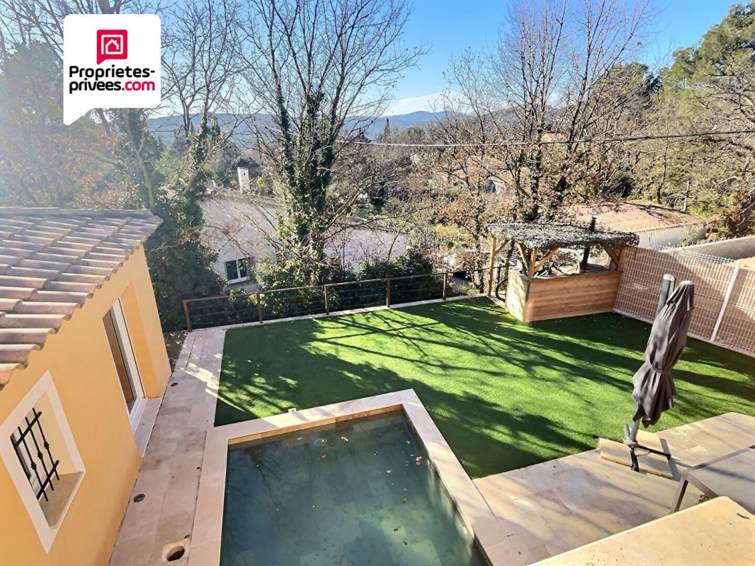 Gecko Agency vous propose un mode de vie indépendant dans cette maison individuelle, en pleine nature, nichée sur plus d'un hectare de terrain forestier, dans la jolie commune provençale de Figanières. Dès l'entrée, un vaste hall donne le ton, un WC invités, une cuisine avec cellier, un local technique ou rangement, ainsi qu'un bureau (avec cheminée) à l'étage offre un espace pratique pour le télétravail. Le grand séjour exposé Sud et son poêle à bois réchauffe l'ambiance. L'espace nuit comprend 3 grandes chambres (14 à 17m²) dont une avec dressing (ou possibilité de créer une salle d'eau), et une salle de bains. Ici, vous vivez en totale autonomie grâce à un système photovoltaïque performant pour la production d'électricité, un forage avec filtration et adoucisseur d'eau. L'ensemble est complété par des menuiseries en PVC double vitrage pour un confort optimal. Extérieurs à fort potentiel: piscine à réhabiliter, abri deux roues, environnement 100% naturel, cadre forestier. Cette propriété s'adresse aux amoureux de la nature, de la tranquillité ou ceux en quête d'un projet de vie. (travaux de rafraîchissement à prévoir). Pour vendre ou acheter nous sommes là pour vous accompagner dans les meilleurs conditions.