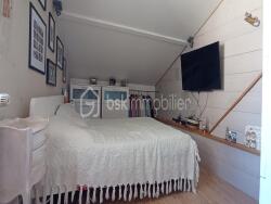 À l'étage, un palier pouvant accueillir un bureau dessert deux chambres, dont une en sous-pente, une salle de bain moderne avec baignoire d'angle, un toilette séparé et un espace buanderie.