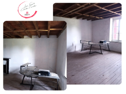 Maison à usage d'habitation entrée, cuisine de 13m2, sde, wc, 1er étage palier de 3 chambres de 21, 14 et 12m2, grenier aménageable 43m2, forge collé à la grange (parfait pour un projet de Gites) attenante avec étable et grange au rdc plus jardin, 2 espaces pour stockage, possibilité de faire un poulailler et 2 étables.