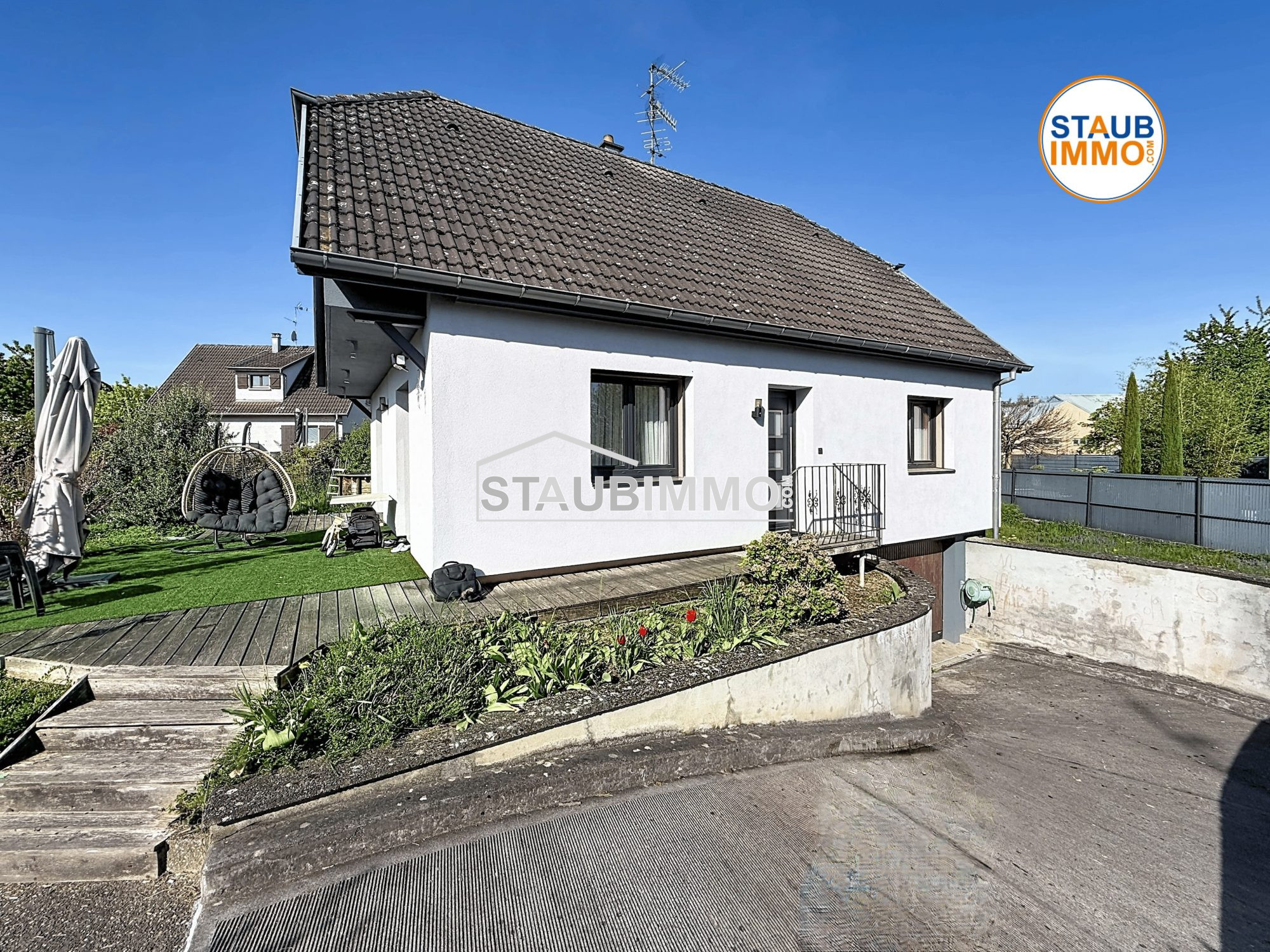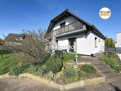 Blotzheim 68730 Ruhig gelegenes Einfamilienhaus 134 m² Grundfläche Grundstück 5,29 Ar In einer ruhigen Sackgasse gelegen, bietet dieses Haus aus den 1990er-Jahren, das 2024 vollständig renoviert wurde, rund 115 m² Wohnfläche (134 m² Grundfläche) und befindet sich in einem ausgezeichneten Allgemeinzustand. Erdgeschoss: Einladender Eingangsbereich Ein Schlafzimmer Separate, eingerichtete und ausgestattete Küche Großzügiges, helles Wohn- und Esszimmer mit Kamin und Zugang zur schönen Terrasse Obergeschoss: Zwei schöne Schlafzimmer, eines davon mit Einbauschrank und Balkon Badezimmer mit Dusche Komplettes Untergeschoss: Technikraum / Waschküche Vorratsraum Multifunktionsraum (Büro, Spielzimmer, Fitnessraum ) Doppelgarage Außenbereich: Drei private Stellplätze Eingezäuntes, bepflanztes Grundstück von 5,29 Ar Ausstattung: elektrische Heizung, Wasserenthärter, ruhige Wohnlage. Ein seltenes Angebot in dieser Gegend ideal für Familien, die Komfort, Ruhe und Funktionalität suchen.