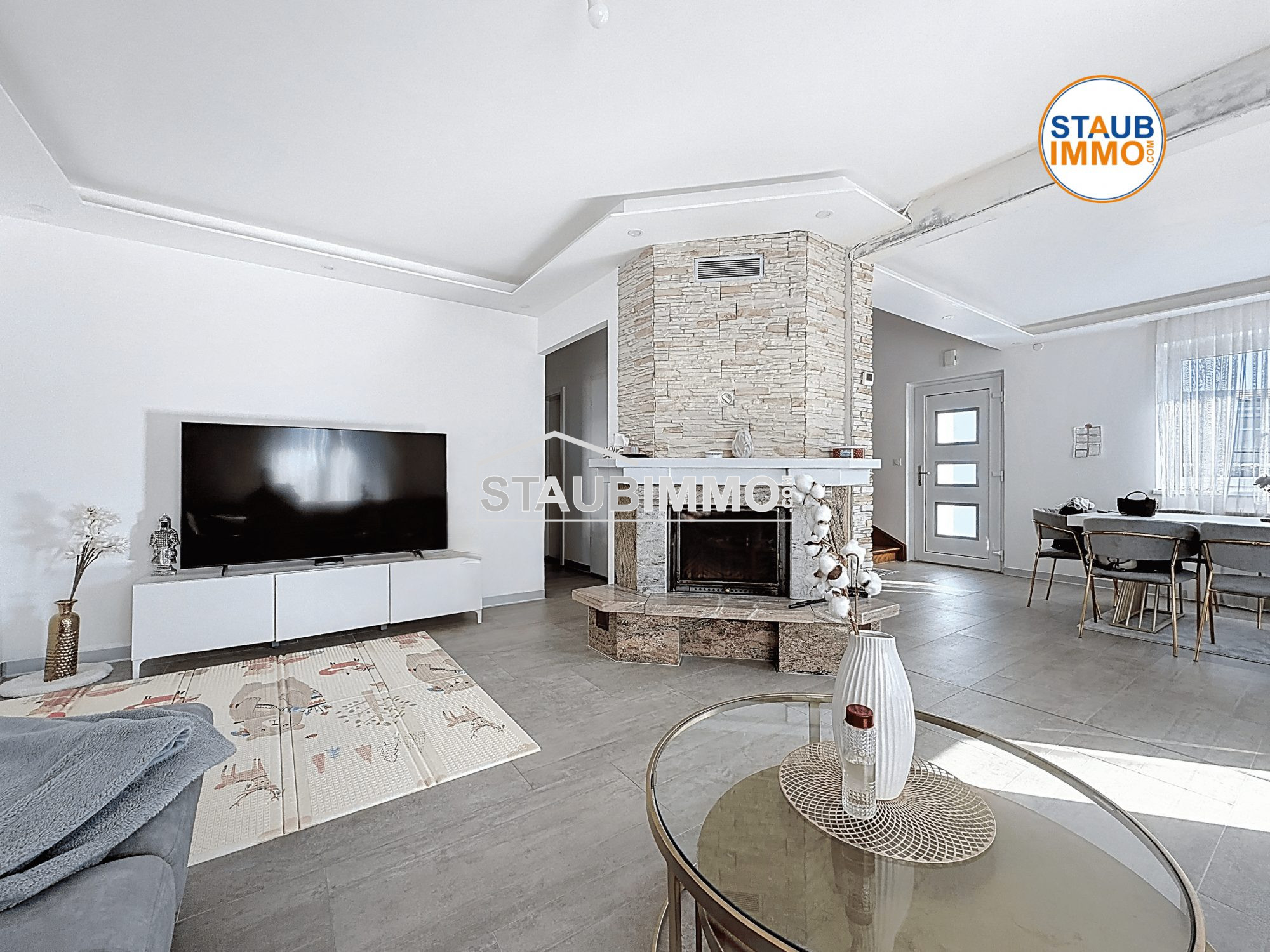 Blotzheim 68730 Belle maison au calme 134 m² au sol terrain de 5,29 ares Située dans une impasse paisible, cette maison des années 1990 entièrement rénovée en 2024 offre 115 m² habitables (134 m² au sol) et se trouve en excellent état général. Rez-de-chaussée : Entrée accueillante Une chambre Cuisine séparée, aménagée et équipée Spacieux salon-séjour lumineux avec cheminée, ouvrant sur une agréable terrasse Étage : Deux belles chambres, dont une avec placard et balcon Salle de bains avec douche Sous-sol complet : Local technique / buanderie Cellier Pièce multifonctions (bureau, salle de jeux, salle de sport ) Double garage Extérieur : Trois places de stationnement privatives Terrain clos et arboré de 5,29 ares Prestations : chauffage électrique, adoucisseur d'eau, environnement calme et résidentiel. Un bien rare sur le secteur, idéal pour une famille recherchant confort, tranquillité et fonctionnalité.