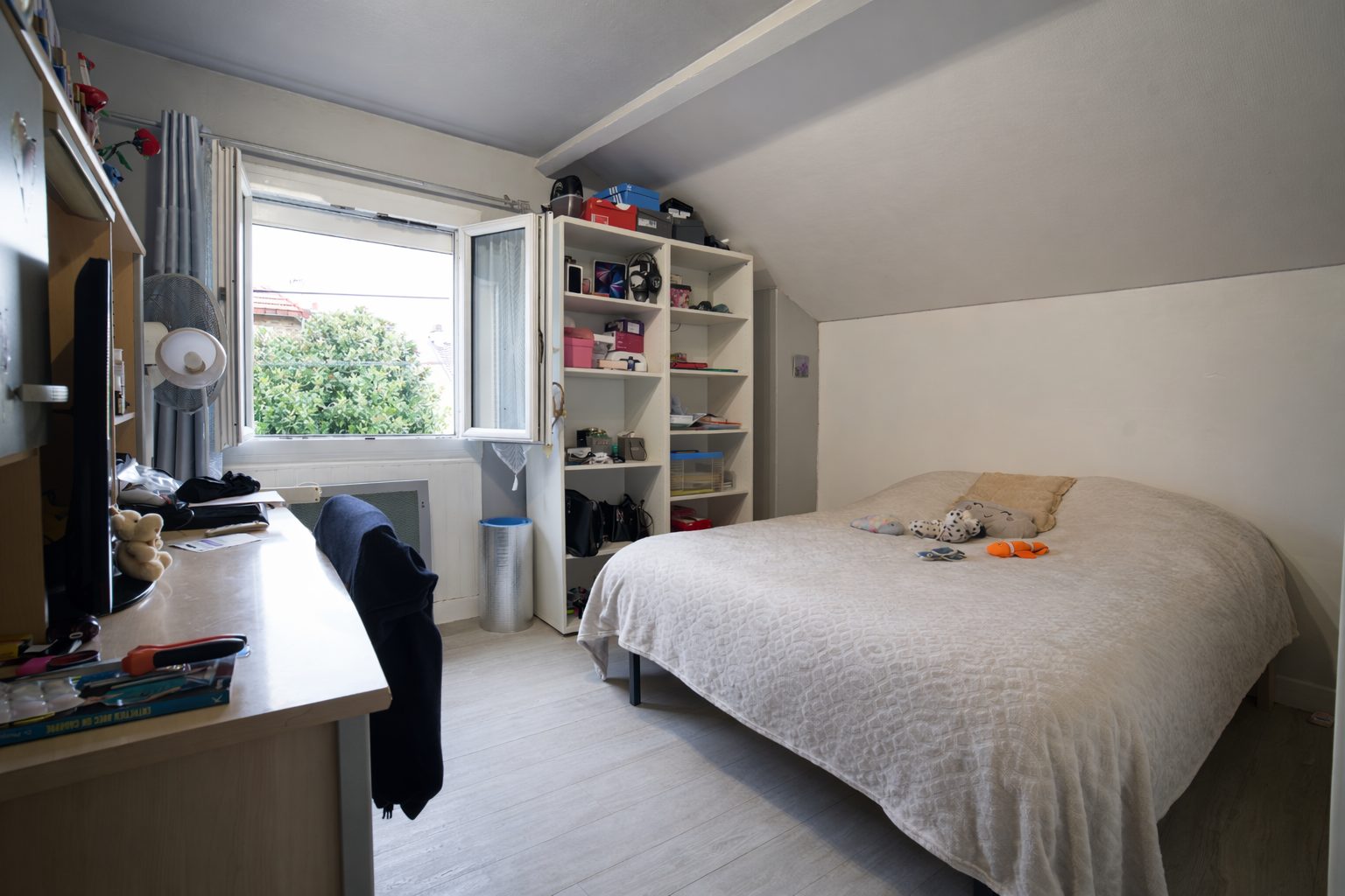 À l'étage, deux chambres spacieuses vous attendent.
