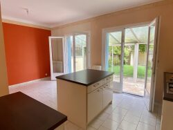 Maison de plain pied, lumineuse avec séjour traversant, située dans une rue calme en hyper centre de Bergerac. D'environ 100m2, elle comprend un séjour avec cuisine ouverte, donnant sur une véranda, trois chambres, une salle d'eau et un WC indépendant. Le jardin clôturé à l'arrière fait environ 150m2. Rénovée récemment avec double vitrage, chauffage au gaz de ville, et tout-à -'égout. La maison viens d'être repeinte par un professionnel, et est libre d'occupation. Vous avez juste à poser vos valises !