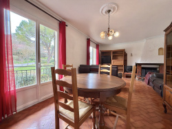 Comprenant une entrée desservant un salon de 24 m2 avec cheminée et balcon.