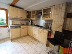 Derrière un portail se dévoile cette maison sur un terrain entièrement clôturé de 7.67 ares à Bartenheim. L'entrée nous invite vers la cuisine équipée ouverte sur le séjour. On prendra plaisir à cuisiner dans cette pièce spacieuse à la fonctionnalité optimale. On découvre un salon séparé avec poêle à bois dans une atmosphère douillette et confortable. On dispose aussi d'une grande pièce buanderie/cellier avec WC utilisée autrefois comme chambre. L'étage propose deux chambres largement généreuses. L'une donne accès à un bureau en enfilade et la seconde à l'étage de la dépendance qui n'attend qu'à être exploitée. La salle de bain offre une baignoire d'angle, une douche, un meuble avec vasque ainsi qu'un WC neuf. Le terrain révèle un bel espace vert avec piscine hors-sol, mais aussi plusieurs dépendances utilisées actuellement comme atelier et stockage. Grenier aménageable, sous-sol dallé, chauffage au gaz et poêle à bois. On est séduit par ce bien aspirant à la convivialité avec un ensemble harmonieux et chaleureux. Le potentiel non exploité reste un atout appréciable.