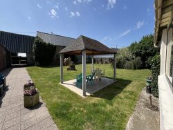 Rez-de-chaussée : Grande pièce à vivre avec vue sur le jardin et kiosque Véranda lumineuse Bureau Belle distribution des pièces donnant accès à 4 espaces, dont 3 chambres, ainsi qu'une salle d'eau avec WC et laverie 2 cheminées, dont 1 tubée À l'étage : Mezzanine avec accès direct à un grenier à rénover Distribution menant à 3 chambres et une salle de bains avec WC Extérieurs : Jardin avec accès routier Dépendances attenantes aménageables (atelier) Grande pâture 1 manège extensible et une carrière Hangar 1 : 9 box (4 sous caméras) Hangar 2 : 7 box (dont 5 alignés et 2 grands box) Terrain constructible de 371 m² accolé à un petit bâtiment couvert
