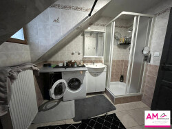 Au premier étage, un deuxième appartement de 55 m² avec une entrée indépendante également , actuellement loué 550e/mois. Il comprend un salon séjour, une cuisine équipée, une salle d'eau avec WC et deux chambres. Chauffage au fioul avec possibilité de raccordement au gaz.(DPE :E)
