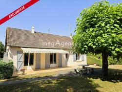 La maison, construite en 1977, dispose d'un agencement fonctionnel : une cuisine équipée, un salon/séjour lumineux avec cheminée-insert, trois chambres, une salle de bains et une terrasse de plain-pied. En sous-sol, vous trouverez un grand garage et des pièces annexes pratiques pour le stockage ou le bricolage.