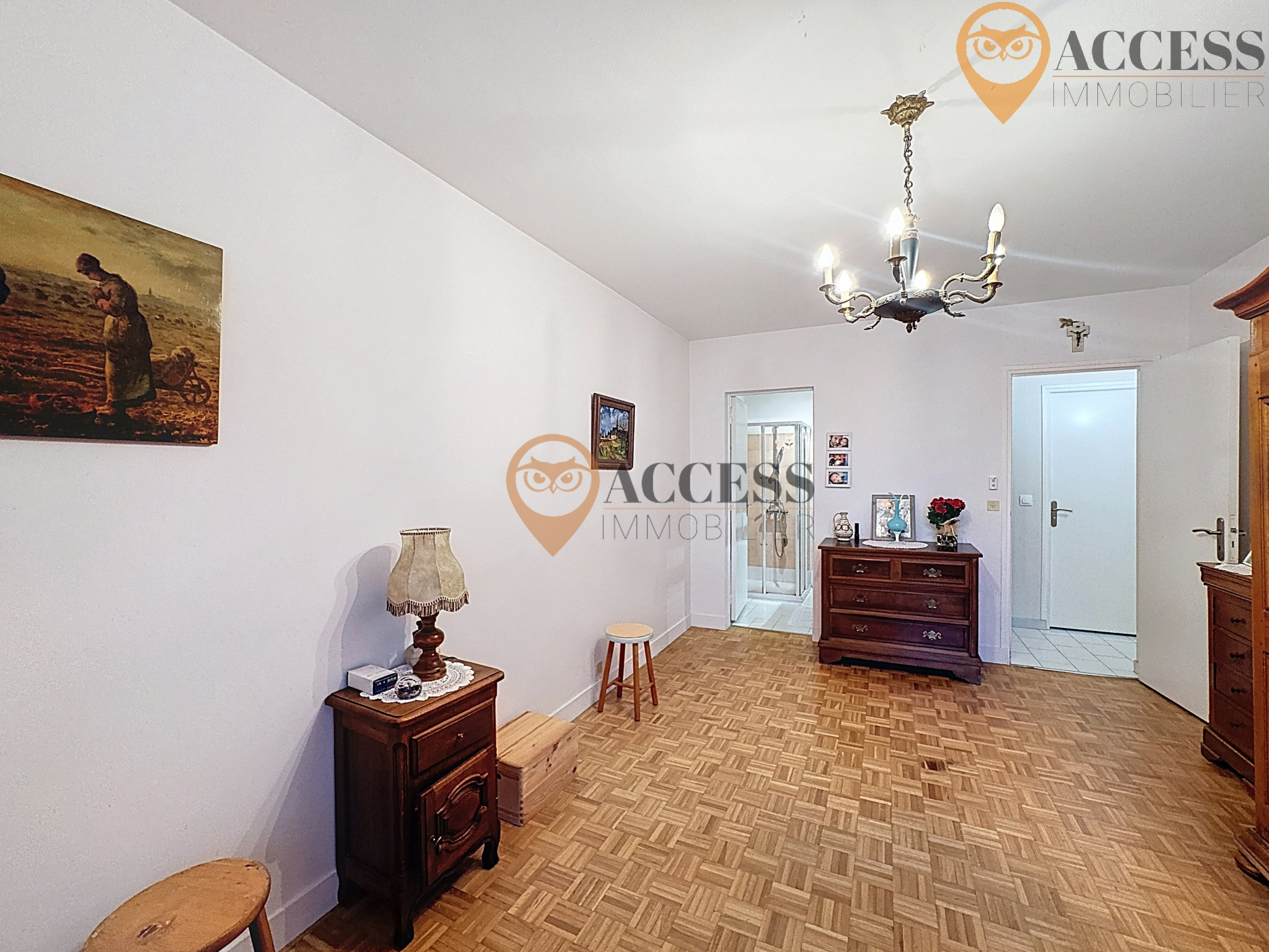 Elle se compose d'une entrée avec rangements - Salle à manger ouverte sur une grande cuisine équipée et aménagée avec accès terrasse - Séjour de 34m² avec du marbre au sol équipée d'une cheminée. À l'étage : 4 chambres dont deux avec balcon et une avec vue sur le petit lac - Salle d'eau - WC.