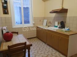 Maison mitoyenne de 58 m² se composant d'une entrée, cuisine, chambre, séjour, salle de douches, wc. Grenier aménageable, petite dépendance, bâtiment, terrasse, petit jardin. Cc fuel récent, menuiserie PVC Double vitrage.