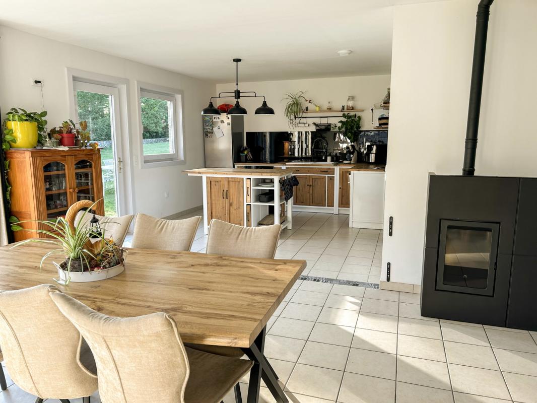 Dès l'entrée, vous serez séduit par le vaste séjour lumineux de 35 m², baigné de lumière naturelle et réchauffé par un insert bois qui crée une atmosphère chaleureuse et conviviale. La cuisine moderne est entièrement équipée, ouverte sur le séjour, offre un espace de vie idéal pour recevoir famille et amis. Une salle de bains fonctionnelle,